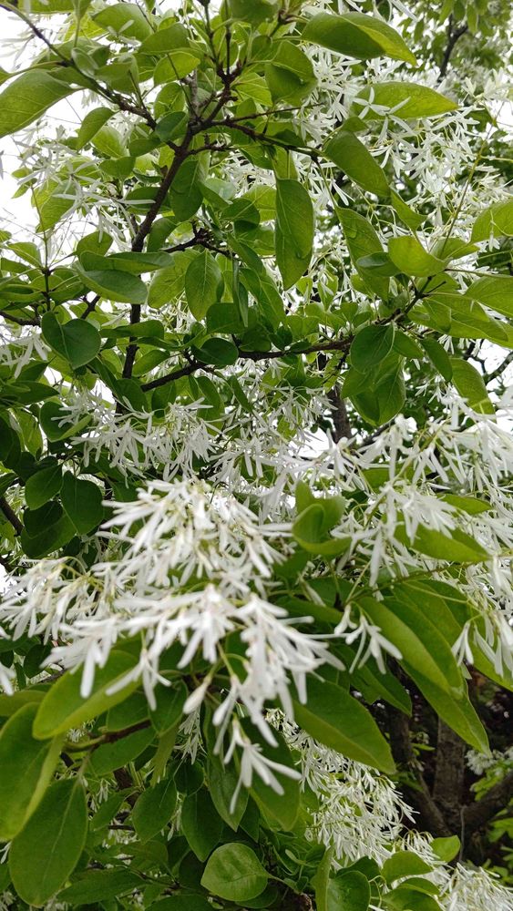 こんなに花が咲くまで気が付かず😅冬芽や蕾、何も見ていなかった😱散る前に気が付けて良かった。シマトネリコと同じ、モクセイ科。トネリコが複葉に対して、こちらは単葉なのでヒトツバタゴだとか。なるほど🤔