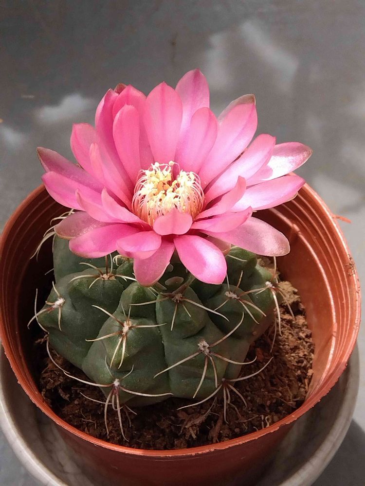 サボテンの花がベランダに出たら大きめな花を咲かせていました