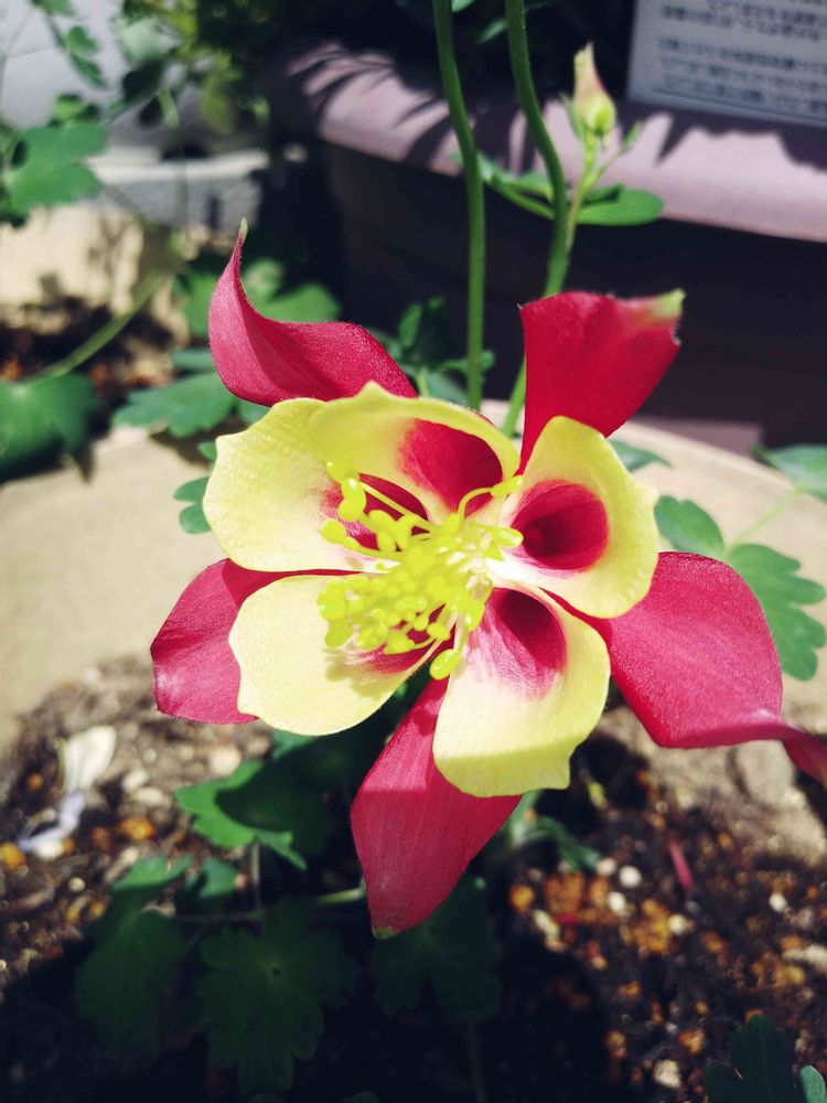 紫に続き、赤&黄色のオダマキも咲きました😊