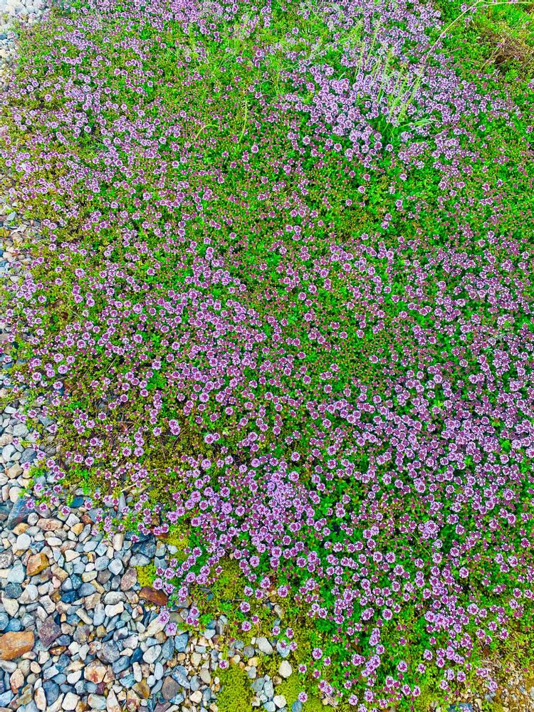 今年も小さな花をいっぱい咲かせています。草防止になります🌸