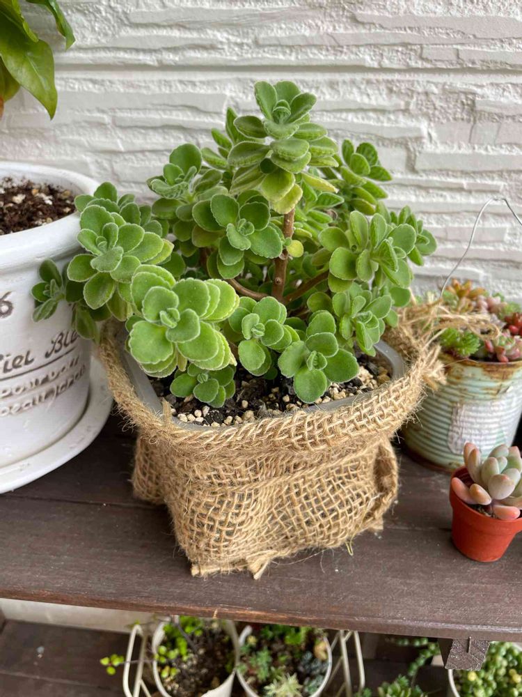 鉢はなんと味噌カップに底穴開けて、麻布巻き巻き😂