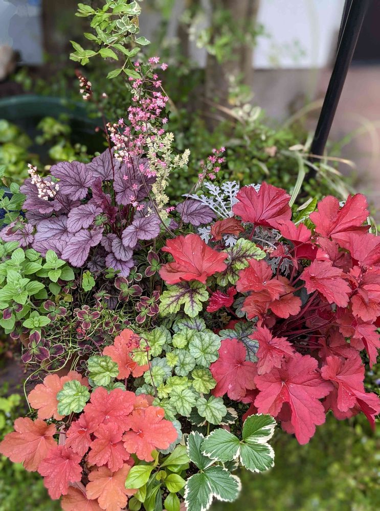 ヒューケラは色の種類が豊富で、花でなくても楽しませてくれますよね😆😆😆