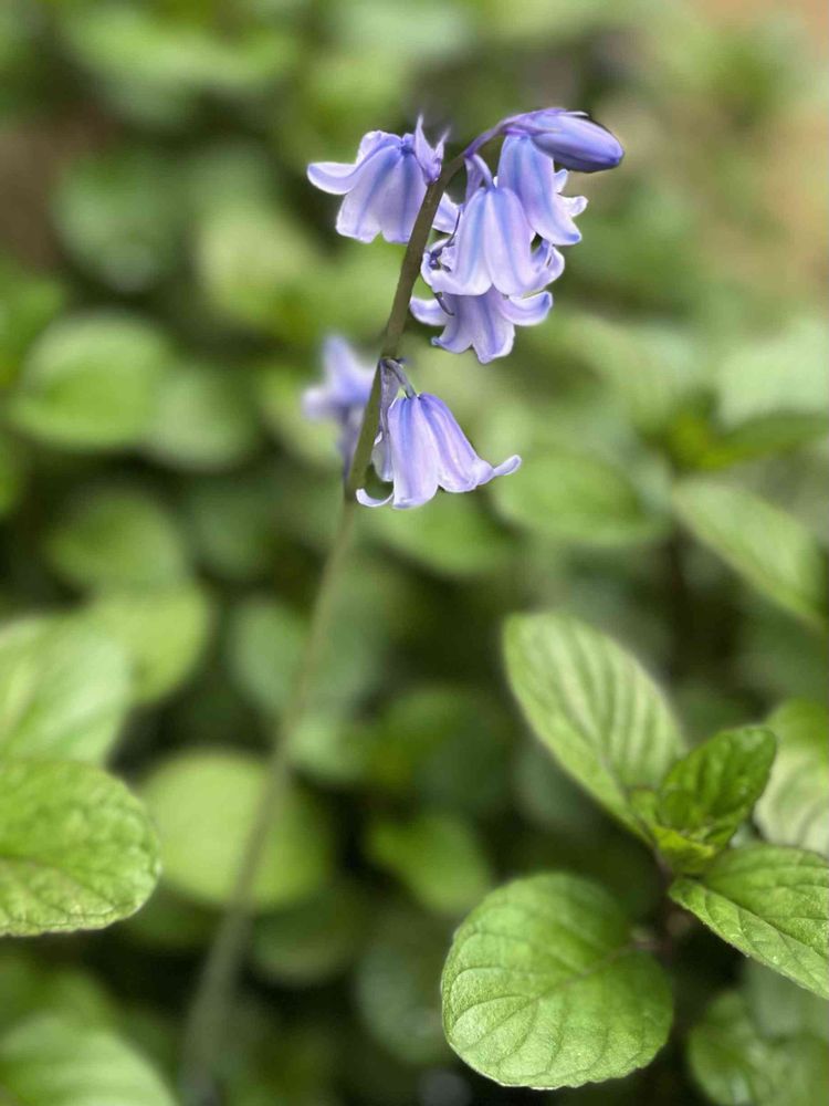 植えた覚えがないのに、あちこちから葉が出てきて、抜こうか迷いながらの観察。GSのpicで、釣鐘水仙/シラー・カンパニュラータだと学びました。