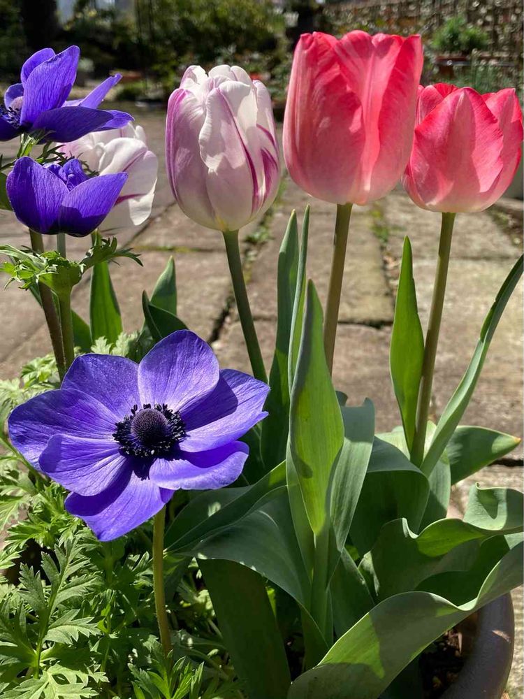 アネモネの紫が鮮やかで素敵ですね~💕チューリップも花盛り🌷🌷🌷