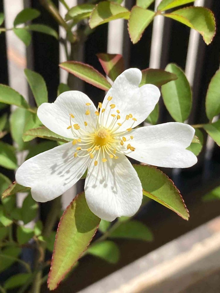 3年前に特価品でお迎えした白い一重咲きの【モッコウバラ】♡