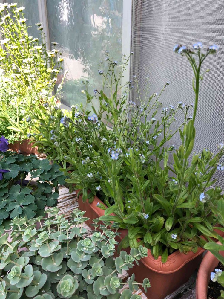 わすれな草の種はダイソーからのなんですが、たくさん出て畑の横や鉢にも植えて待ち時間いっぱいでこんな感じです!