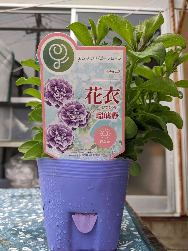 この時期に禁止令 なんてやりきれない思いでいっぱいですが😭😭 おかげさまで 冬越しのペチュニア、 カリブラコアがありますので挿し芽を作り何とかしのいでおります。 解禁の5月までには、まだ10日ほどあり その間に 瑠璃静さんがいなくなってしまうぅ〜と思い作戦を決行いたしました。新品種だけは挿し芽ができないので、どうしても株が欲しかったのです。何とか、ばれずに植え付け完了し 保険の挿し芽も作りました タグとポットは隠してあります。