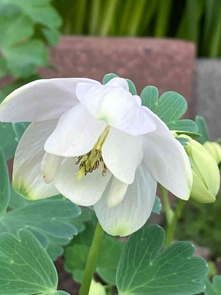 真っ白のオダマキってあまり見ないかも🤔 クリスマスローズみたいに照れ屋さんなのね🥰