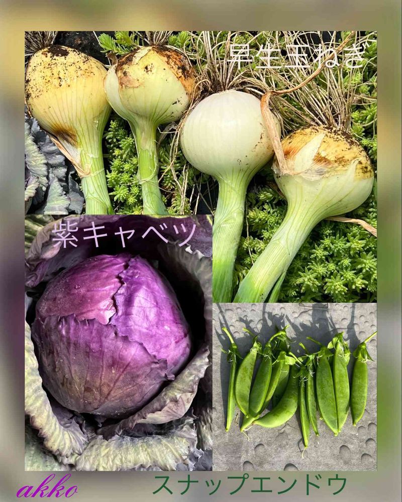 紫キャベツと、スナップエンドウも収穫してます‼️