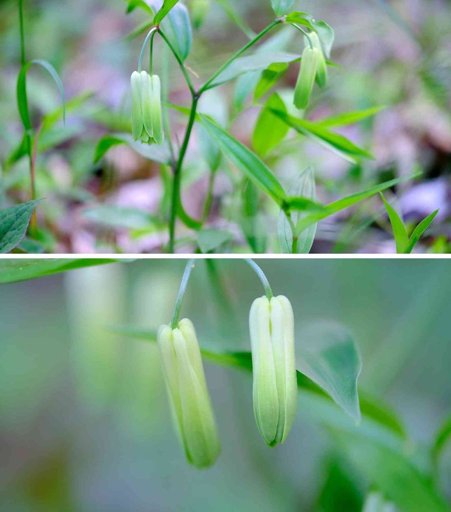花の付け根に突起がなくアマドコロと似ていますが、や花の形からホウチャクソウと判断しました。