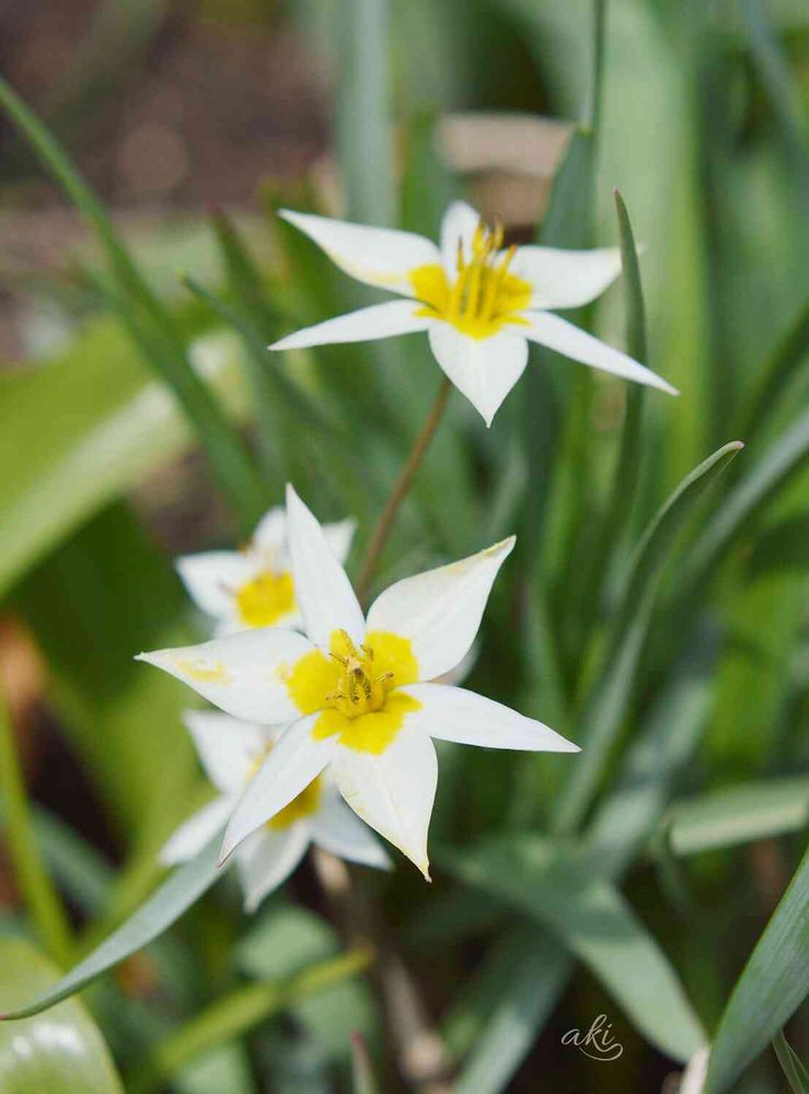 akiらさんの原種系チューリップ トルケスタニカ,原種チューリップ,小さい花壇の投稿画像
