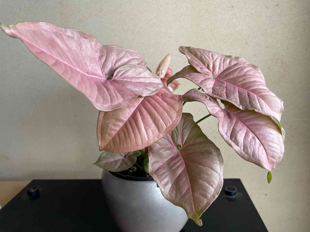 葉の表面は薄ピンク 裏側は淡いグリーンと面白く美しい 観葉植物で我が家のお仲間になりました。(11月4日撮影時picです)