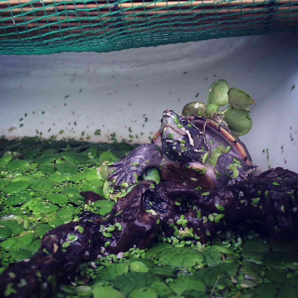 この亀さんよ〜く水槽からこちらを見ていてご飯の催促や通りがかった猫を威嚇したり、亀の写真を見せると逃げます(^ν^)。