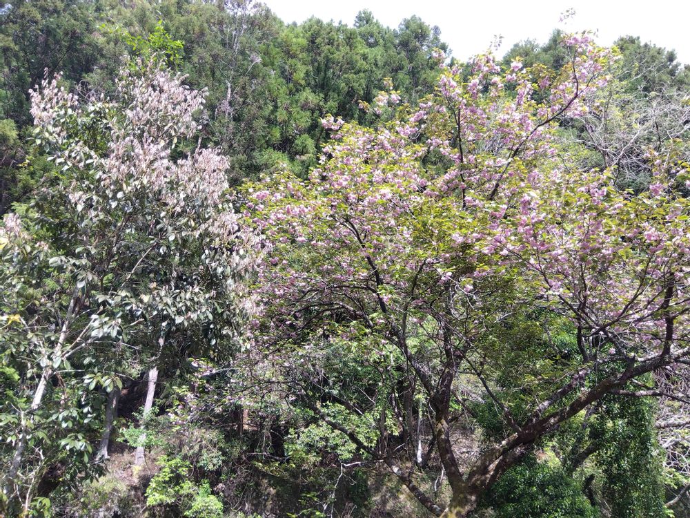 山の中に植えられてた八重の桜🌸