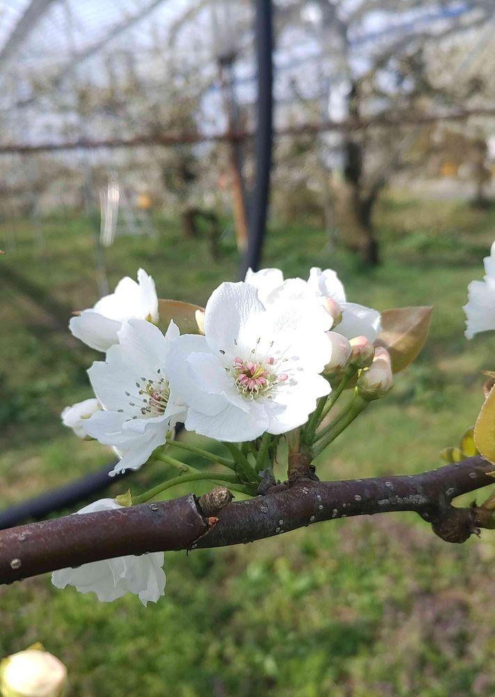 🐶散歩の途中の果樹畑に咲いてる梨の花🐾