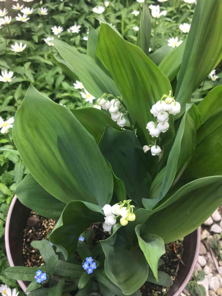 花友さんのご実家から頂いた鈴蘭と実家の勿忘草が今年も仲良く咲きました