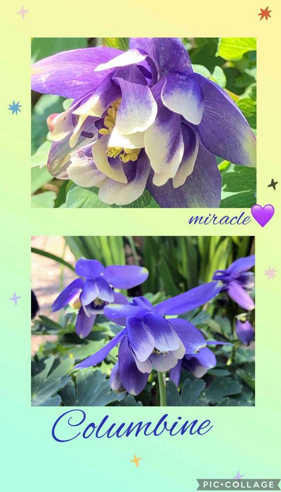 庭のオダマキ、一つだけ 八重の花が咲きました。⬆️他は、皆 ⬇️の花なのに❣️💟