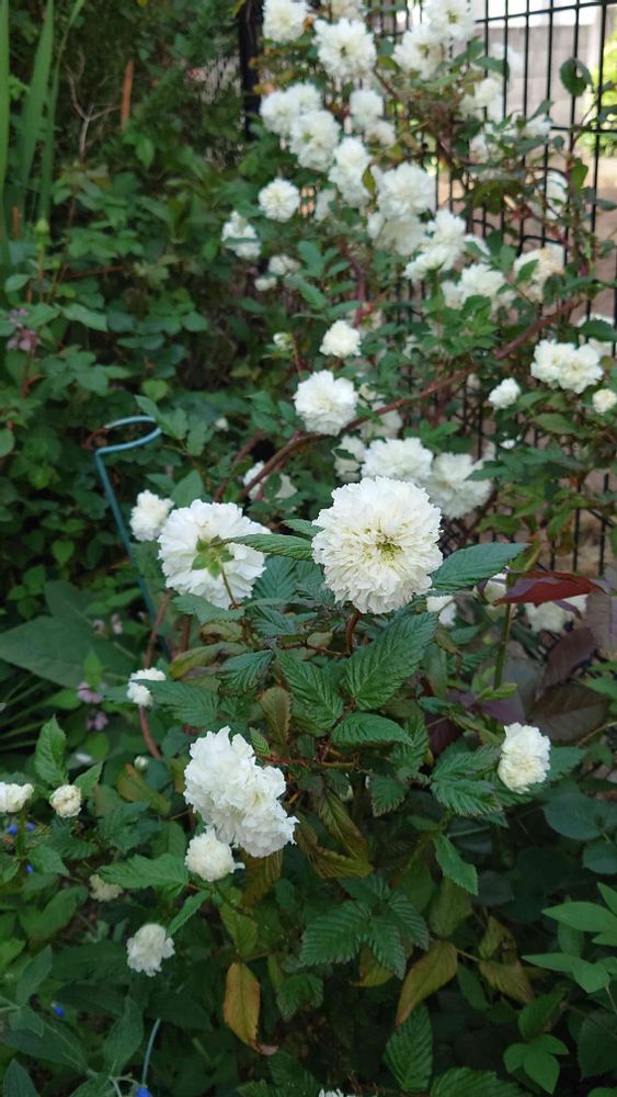 真っ白なトキンイバラちゃん、お花はミニバラそのもの~🥰、でもキイチゴなんだ!