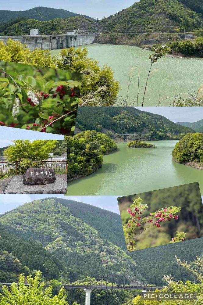 ダムの周りは自然いっぱいで、樹木の花や足元に咲く