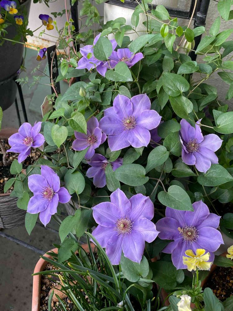 初めてのクレマチス、2年目のお花がこんなに沢山、嬉しいです💜