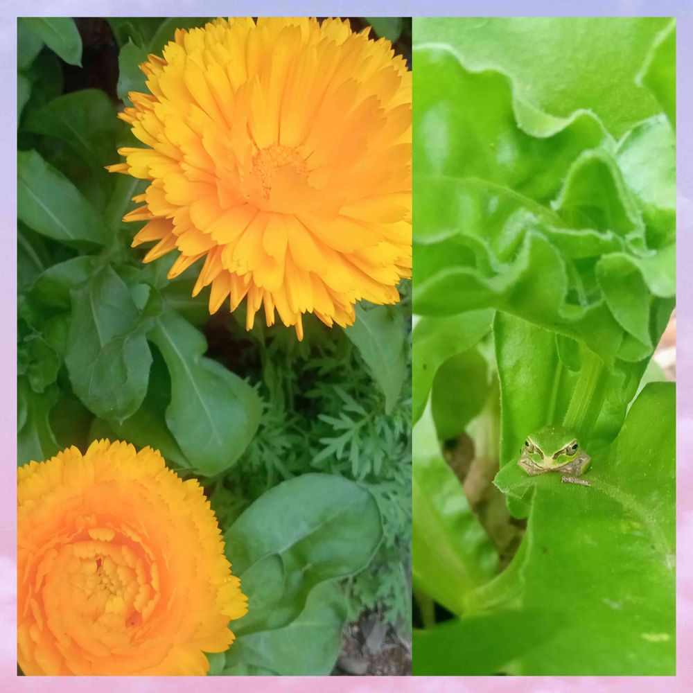 キンセンカのビタミンカラーと🐸ちゃんにパワーもらえるね〜🥰🥰👍👍