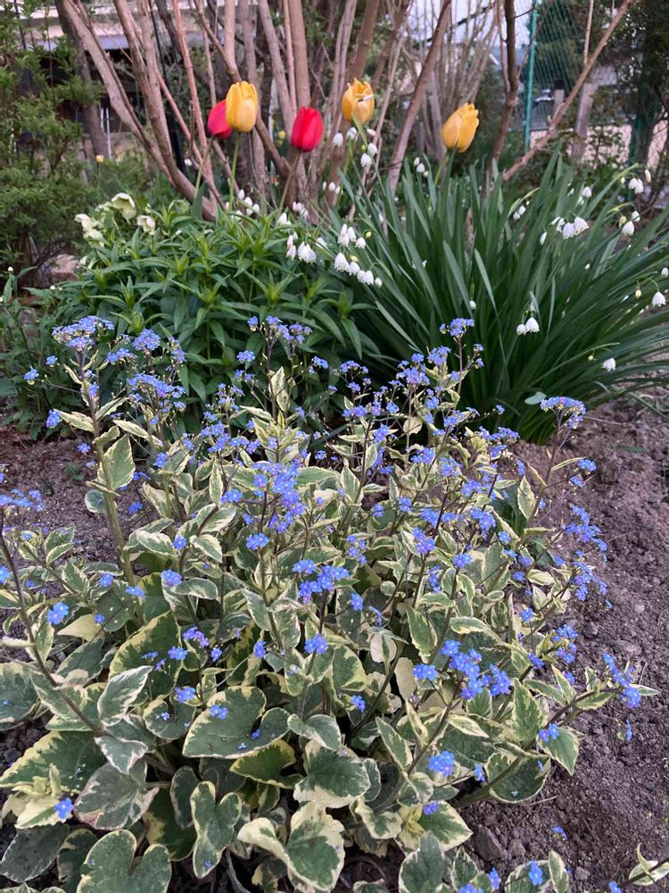 冬の寒さを越えて早々に咲く花は、それだけで感動ですよね。ブルネラ大好きで、株分けしたかったのに、タイミングを逃してしまいました😅