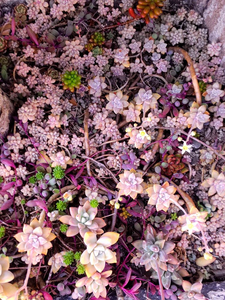 東南花壇の地植え多肉ちゃん達です😻💗🤍💜💚