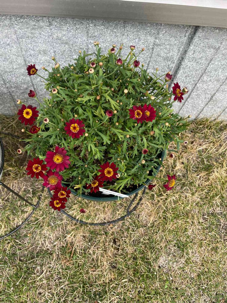 去年の秋に買ったボンザマーガレット😊ずっとお花咲かせてくれてる!また咲きだした〜😊蕾が咲く前に枯れちゃったり、葉っぱがところどころ枯れるのはなんでだろ😯