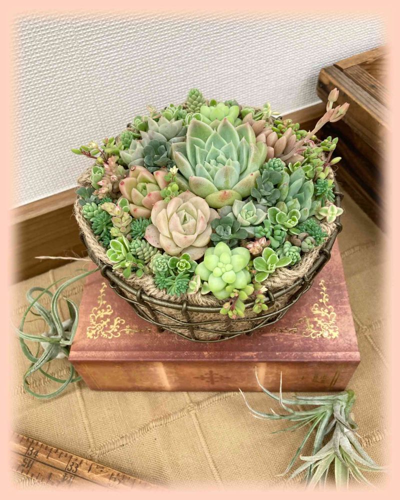 多肉ちゃんのワイヤー籠の寄植え🧺