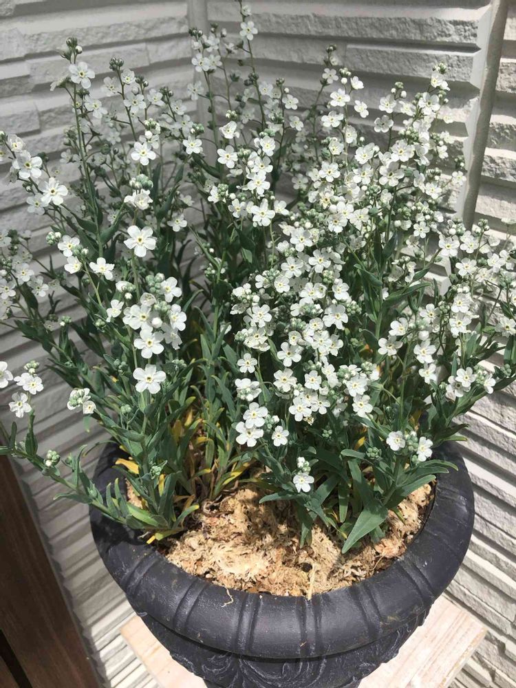 南向きで西陽もガンガンな日当たり強めの我が家ではオンファロを地植えしても灰カビ病になってしまうのでギリギリまでポットで育てて寄せて楽しむことにしています(*˘︶˘*).。.:*