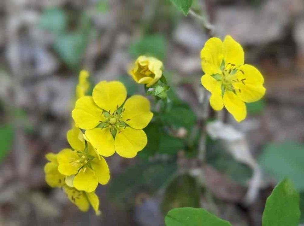 庭の奥にヘビイチゴのお花がきれいに咲いていました