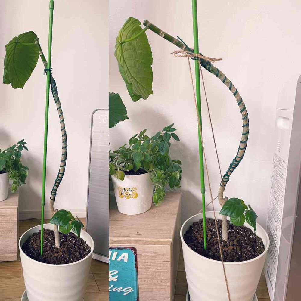 リビングのウンベちゃんの曲げ木に挑戦!最初ワイヤーだけで固定しようと思ったら、あまり曲げることが出来ず、結局麻紐使いました😅もう一匹は、新しい枝が出てきてもう少し成長してからにしてみます💦