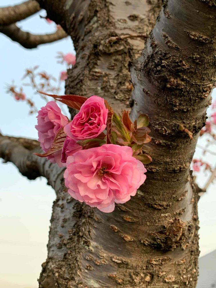 暖かい一日、八重桜が次々と開花しました( ´∀`)