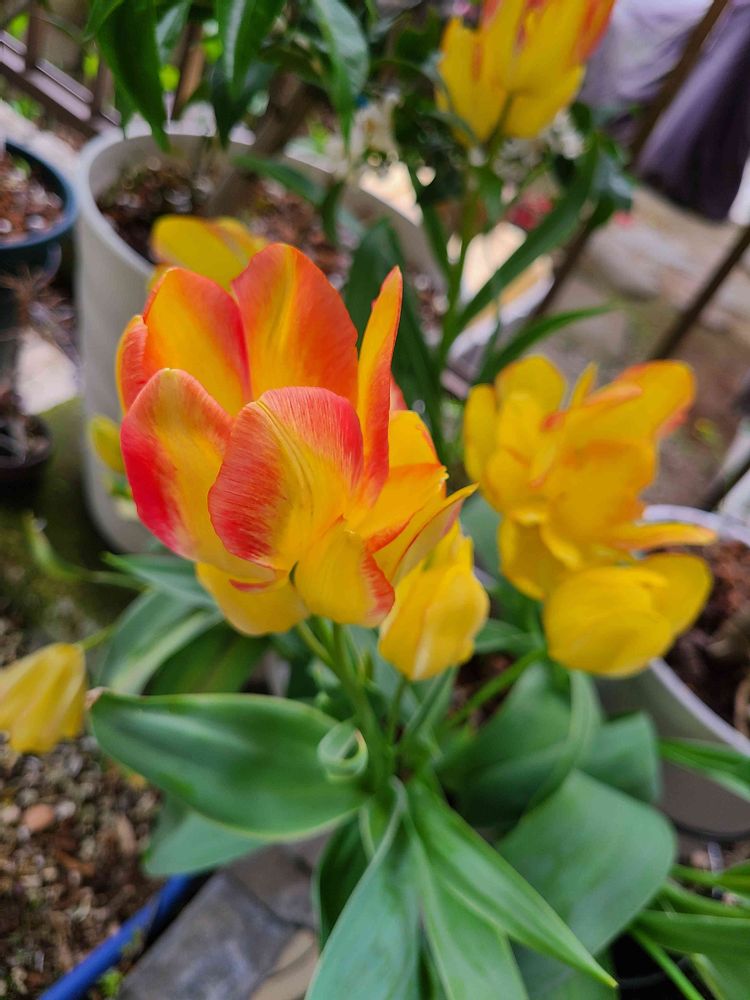 チューリップ アントワネットは、咲き始めは黄色で次第に縁が赤く染まってくるチューリップです。