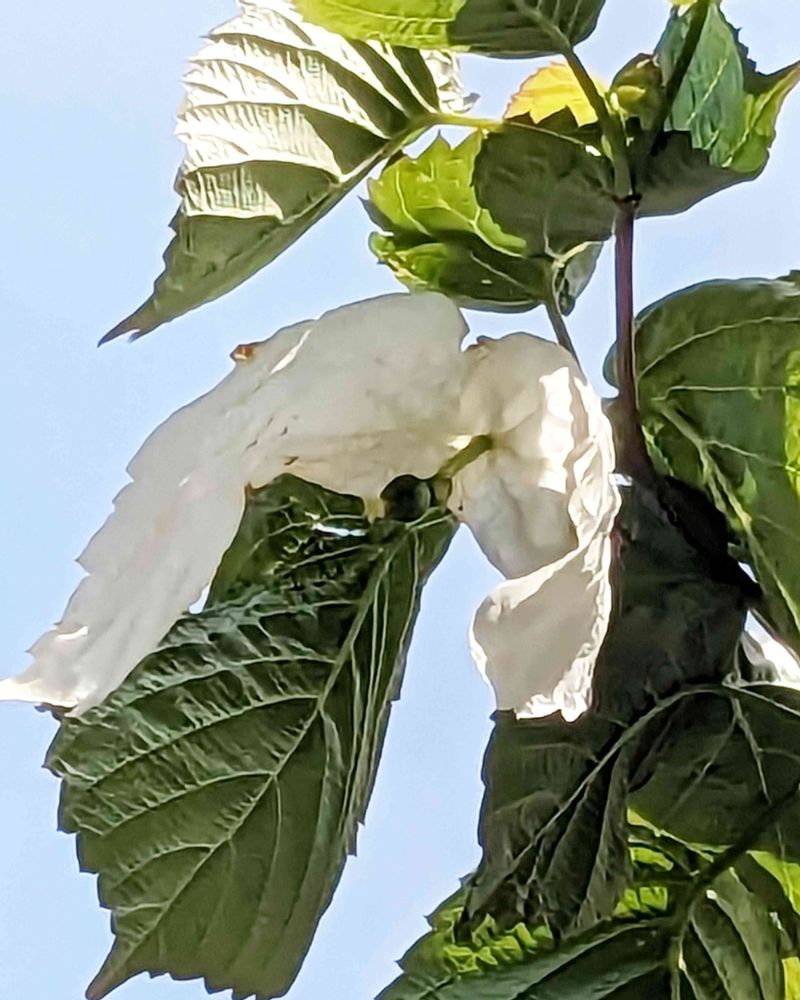 白い大きな二枚の苞葉が垂れ下がりよく目立つため日本ではハンカチの木と言うそうです。