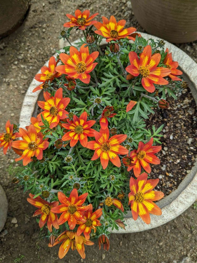 駐車場🅿脇の鉢植えでイキイキと咲いていた綺麗な花🧡ビデンス🧡