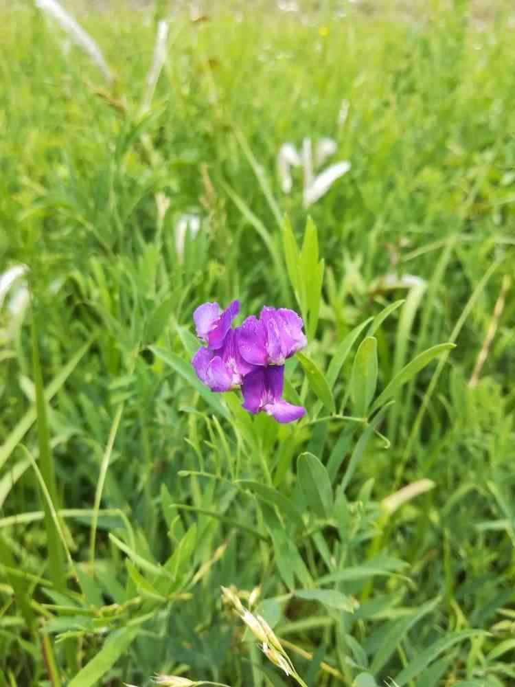 近くの河原を散歩中見つけました。一見カラスノエンドウに似てますが花の大きさや色が大分違います。調べてみるとマメ科の*連理草(レンリソウ)*という花です。