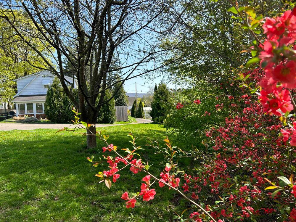 この一角も他の場所にも木瓜の茂みがあります。ここを購入した際、公園だと思って敷地を通って近道をする人が多くて、痛い茂みを植えたらすっかり大きくなりました。近道する人には優しくないですが、野鳥の良い休息地になってます🪺