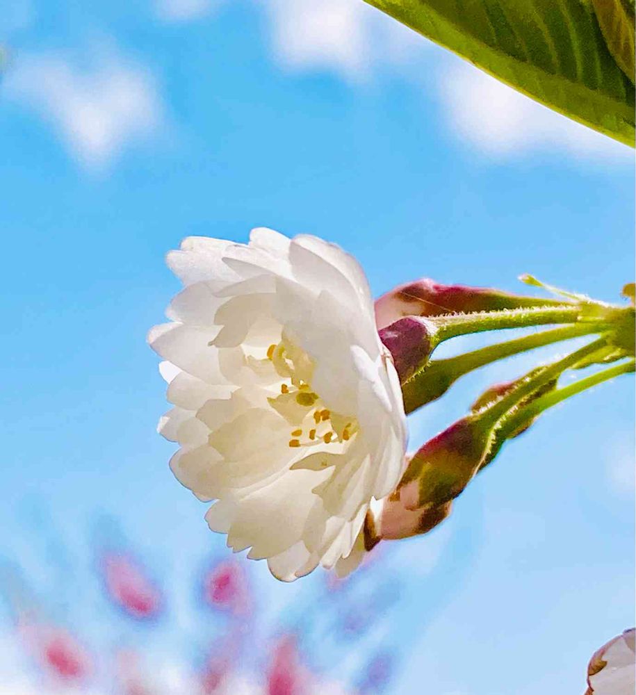 子福桜、青空にはえてますね🌸