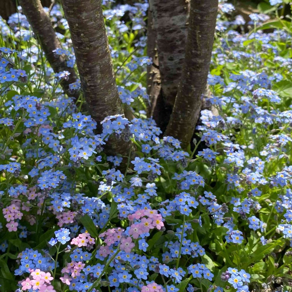 木漏れ日の中の勿忘草さん達。童話の世界ですね🤗