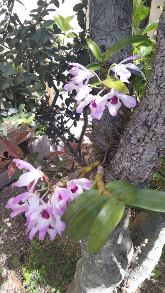 セッコクのお花はデンドロビウムみたいなお花です。木に乗せているだけで大きくなりました。