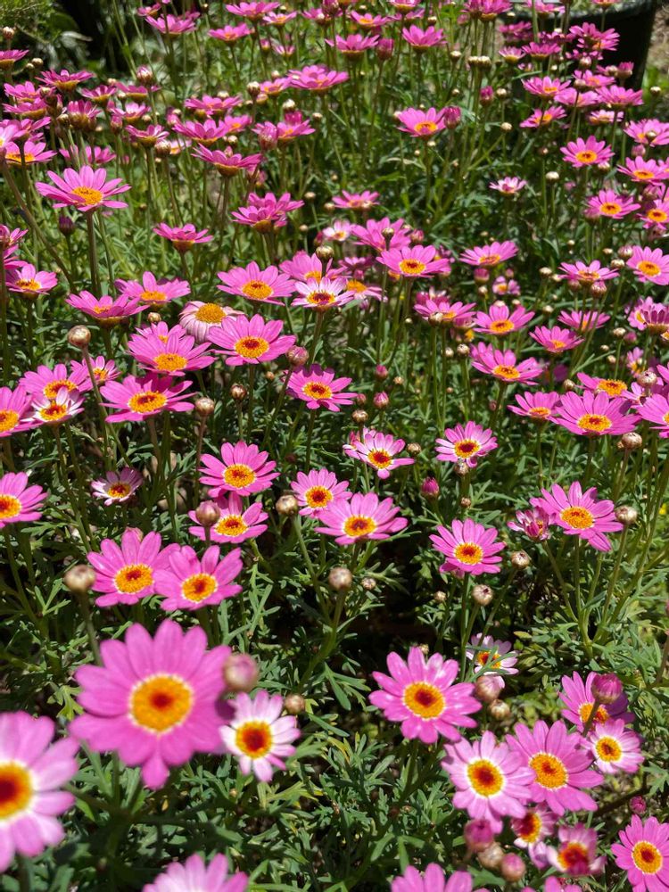 マーガレットのお花畑みたい。2年持つこともありますが、枯れてしまいます。どんな魔法をかけたのでしょう✨凄いですね。