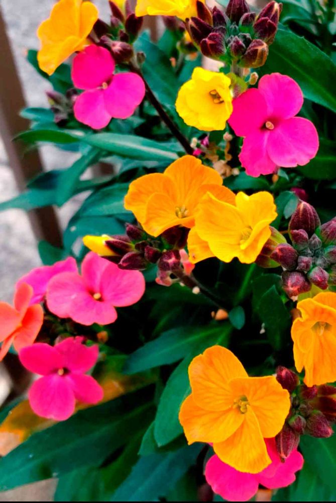 エリシマムスプリングパーティーです。ひとつの花がこれだけの色に次から次へと変化します。
