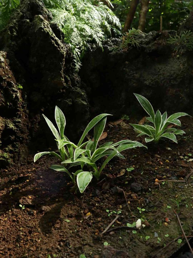 小さなスペースと溶岩石にとても似合う葉っぱですね♪