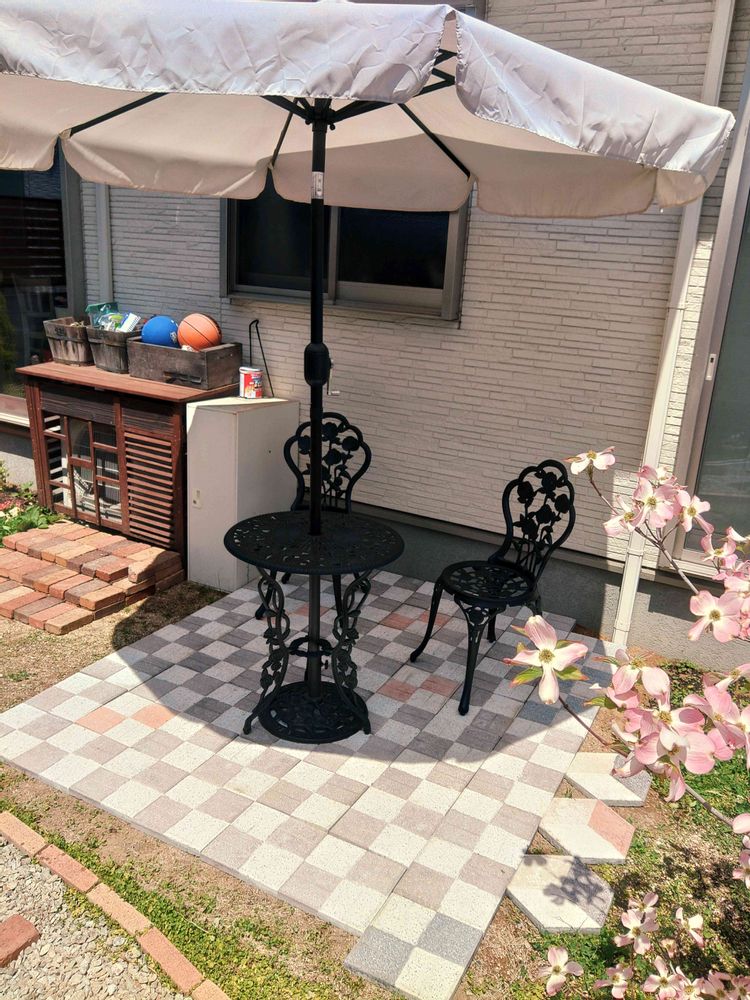 まだ、樹や花など色々植えてみたりしてお庭作り模索中です💦 いつか、樹の木陰で草取りをしながら、疲れたらお茶ができるようなお庭になったらなぁ☺️ 何年か後を想像しつつ、出来るときにコツコツ頑張っています🏵️