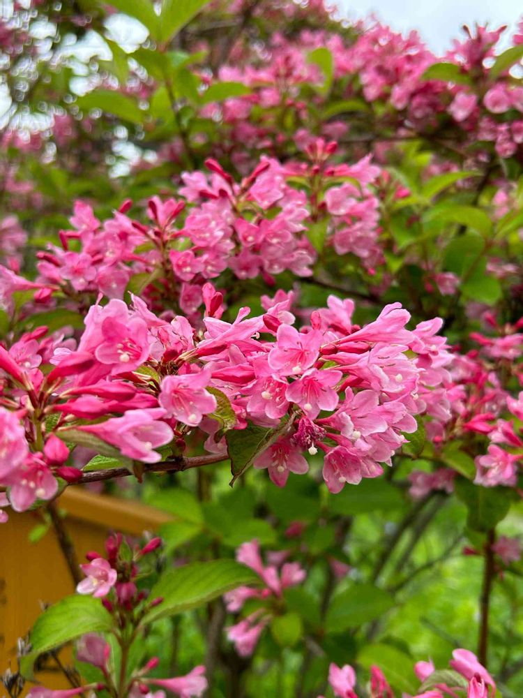 Weigela hortensisはスイカズラ科タニウツギ属の落葉低木。別名ベニウツギとも。