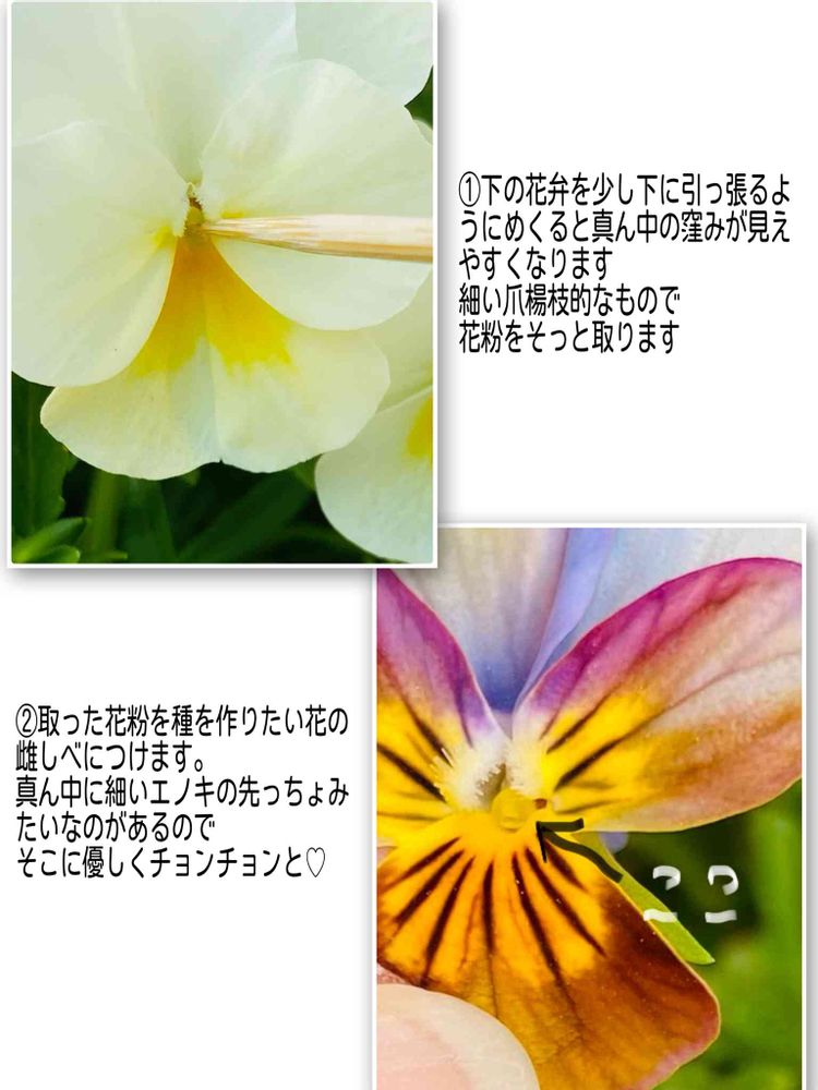 花友さんで ビオラの自家受粉に