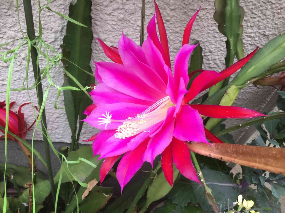 綺麗✿゚❀.(*´▽`*)❀.゚✿です。色が"(*'v^*)ステキ♪"ね。今日picを撮りましたが、名前に自信がありませんでした。やはりクジャクサボテンでしたか。お二人に、ありがとうございます😆💕