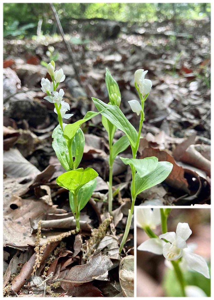広葉樹林の下だよ🌲🌳ランだから、木の根っこにある菌根菌から栄養を貰ってる🎶なので、ふかふかの落ち葉の中から出て来る🍁🍃🍁木の名前はよく分からないんだけど、コナラ、ホウノキとかがある🌲🌳ギンリョウソウもある🤍😆