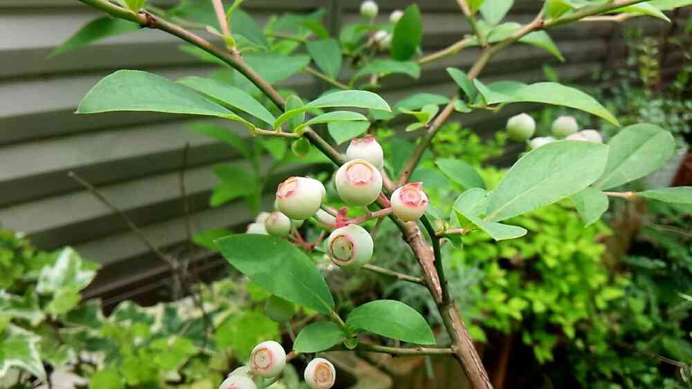 うちのブルーベリー半日陰でも実をつけてくれます。